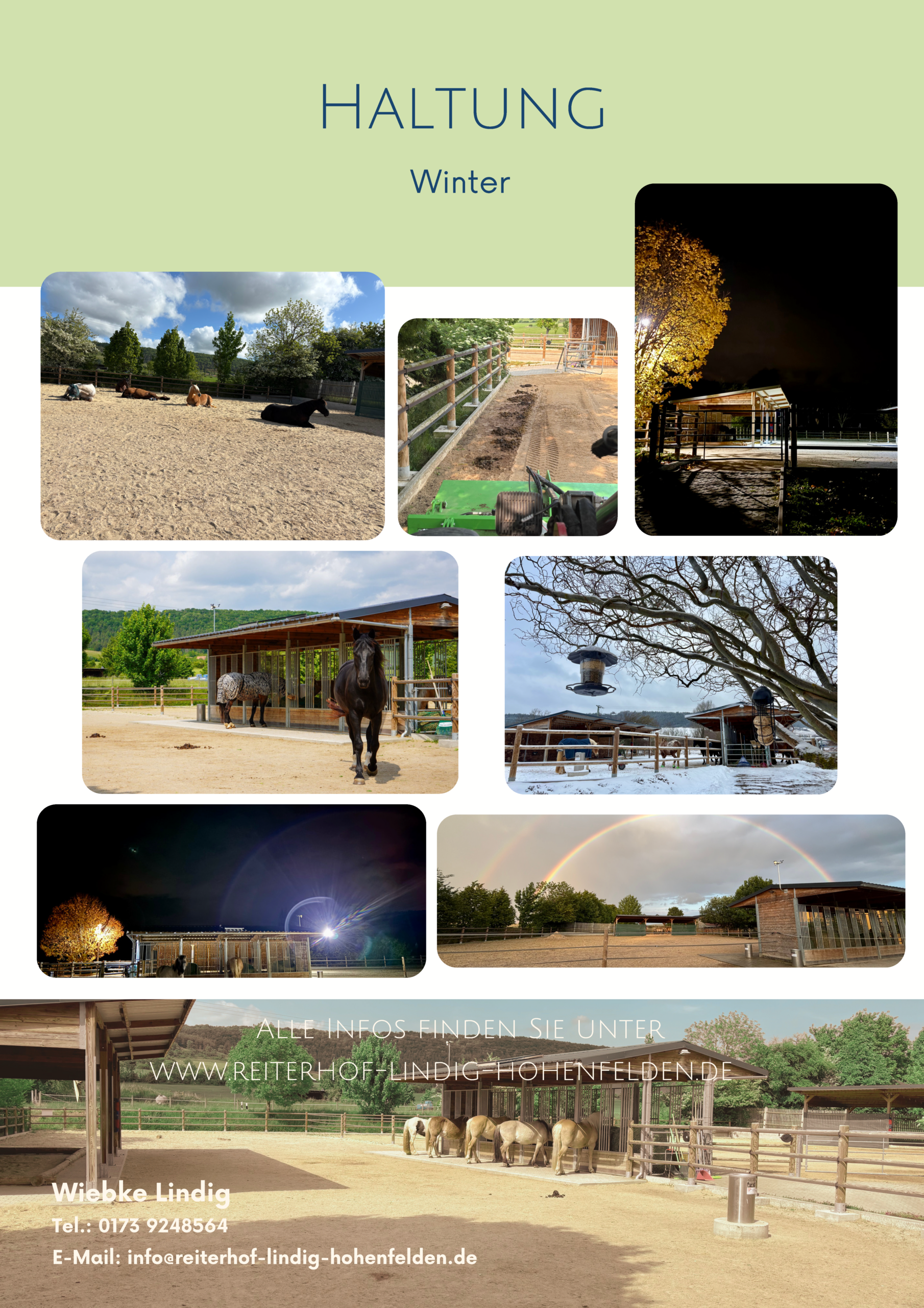 Die Offenstall- Flächen wurden 2021 saniert, mit einem Drainagesystem versehen und aufgewertet. Somit stehen unsere Pensionspferde komplett matschfrei in der Wintersaison. Die Offenstallfläche wird mehrmals täglich abgeäppelt. Um die Kosten für die Pferdebesitzer geringer zu halten, organisieren sich die Pferdebesitzer an Wochenenden und Feiertagen bzgl. des Abmistens der Offenstallfläche selbst. Die Gesundheitskontrolle der Pferde ist durch den Stallbetreiber und seine Beauftragten täglich gewährleistet.